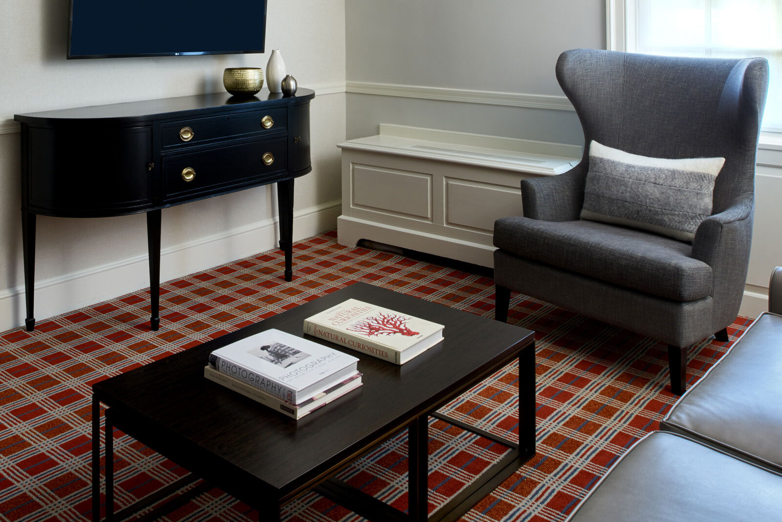 For guests desiring a more spacious lodging option, Morrison House’s One Bedroom Publisher’s Suite is sure to impress. Our luxury suites in Alexandria, VA feature all of the design and amenities of our standard rooms but in a larger layout, with 388 square feet, a king bed and separate living room with pull-out couch. Elegant décor and indulgent upgraded Italian marble bathrooms encourage guests to relax in supreme comfort at this home away from home in the heart of downtown Alexandria, Virginia.